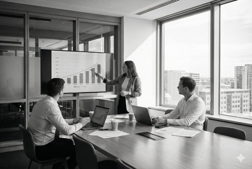 - 会議や打ち合わせの様子